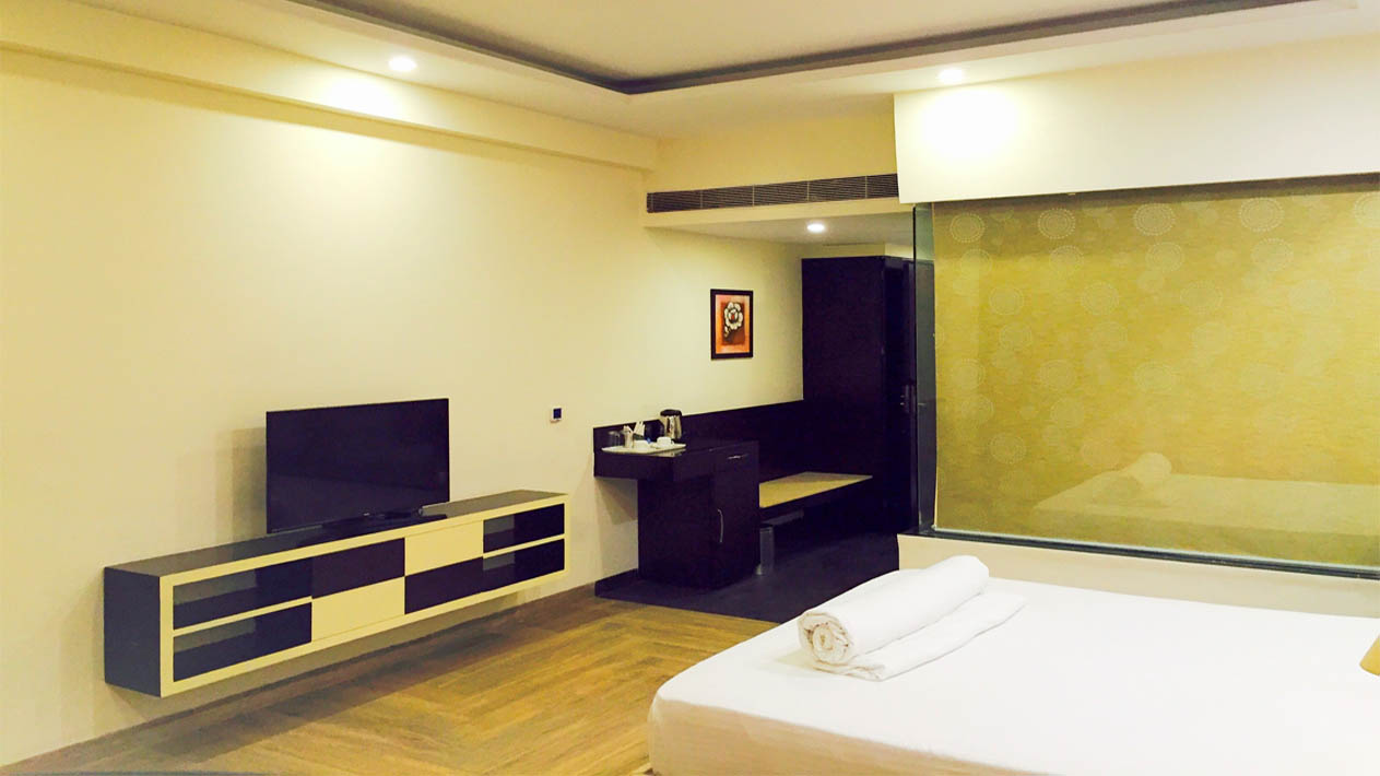 Super Deluxe Room is elegantly furnished, with a king-size bed, sheer curtains and blackout blinds, plush carpets and polished wood floors. Natural lights with Daylight Looks
